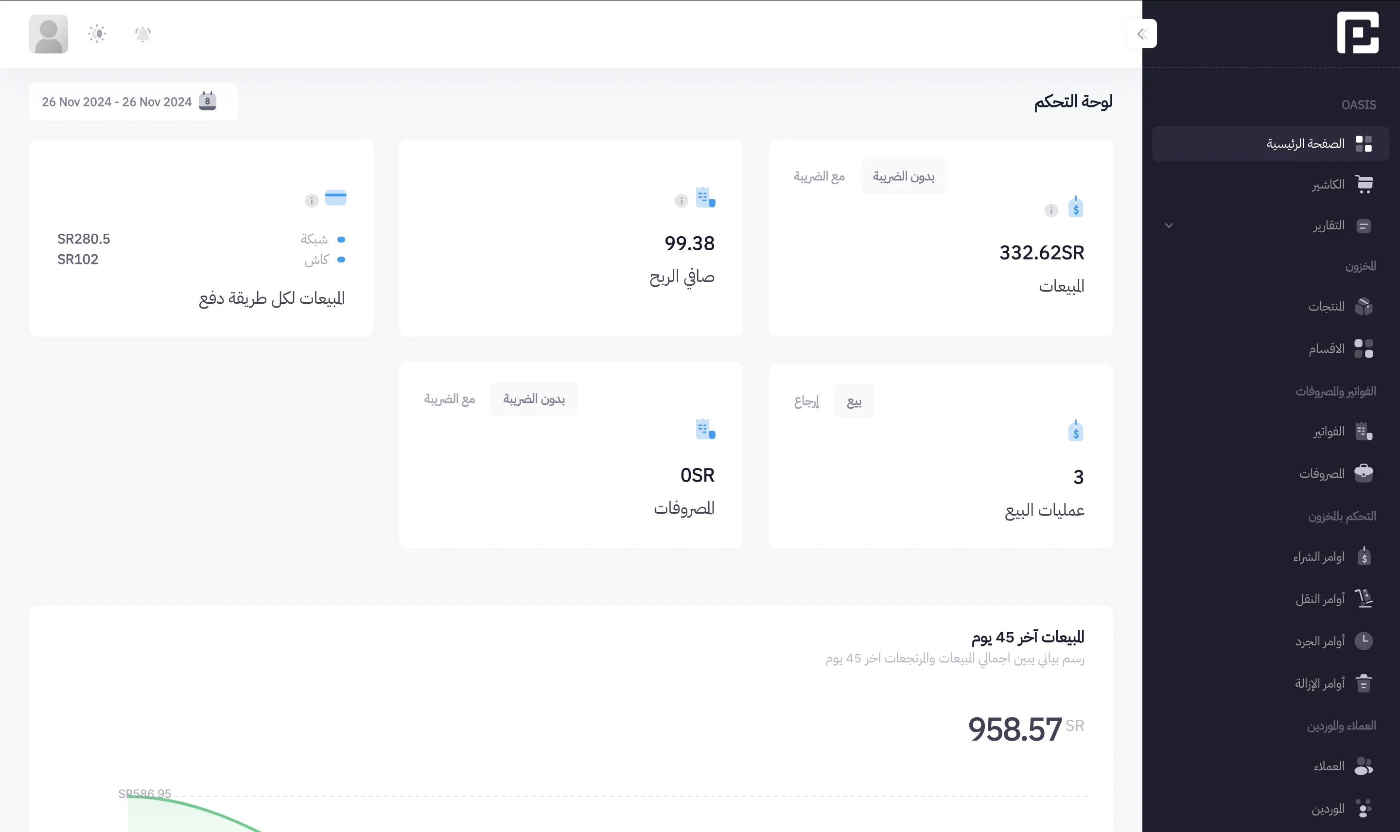 لوحة تحكم سهلة وواضحة عشان تتابع عملياتك اليومية