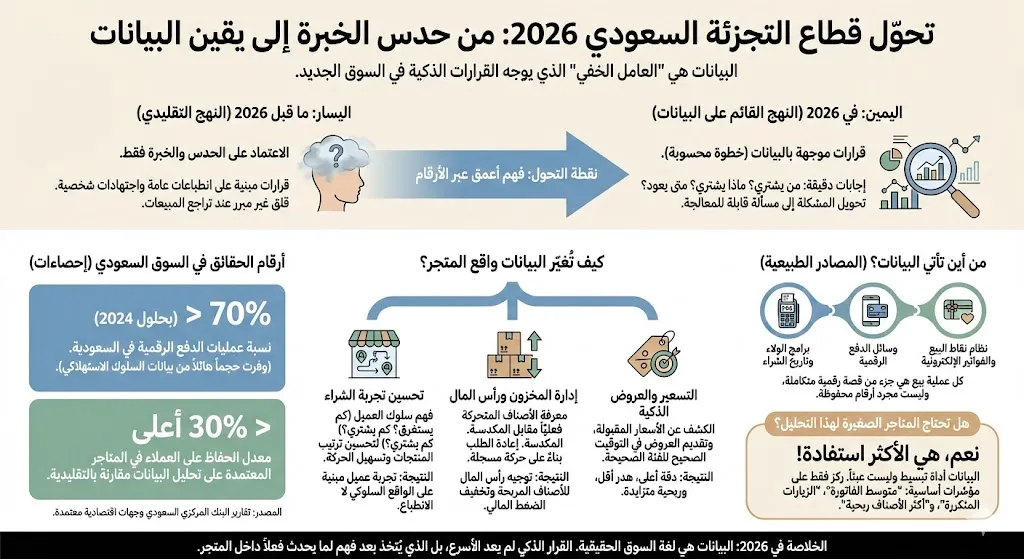 في 2026، لم تعد قرارات المتاجر السعودية تُبنى على الخبرة وحدها، ولا على الحدس الذي اعتاد عليه كثير من أصحاب الأنشطة لسنوات طويلة. الواقع تغيّر بهدوء، والسبب الرئيسي في هذا التغير هو البيانات. بيانات العملاء تحديدًا أصبحت العامل الخفي الذي يوجّه قرارات التسعير، وإدارة المخزون، وتوقيت العروض، وحتى طريقة التعامل مع الزبون داخل المتجر. كثير من أصحاب المتاجر يمتلكون هذه البيانات دون أن يشعروا، لكن الفارق الحقيقي اليوم هو من يعرف كيف يقرأها، ومن يتركها تمر دون أن يستفيد منها.